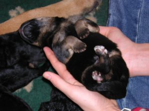 Und um 9.00 Uhr ist der erste Welpe angekommen!